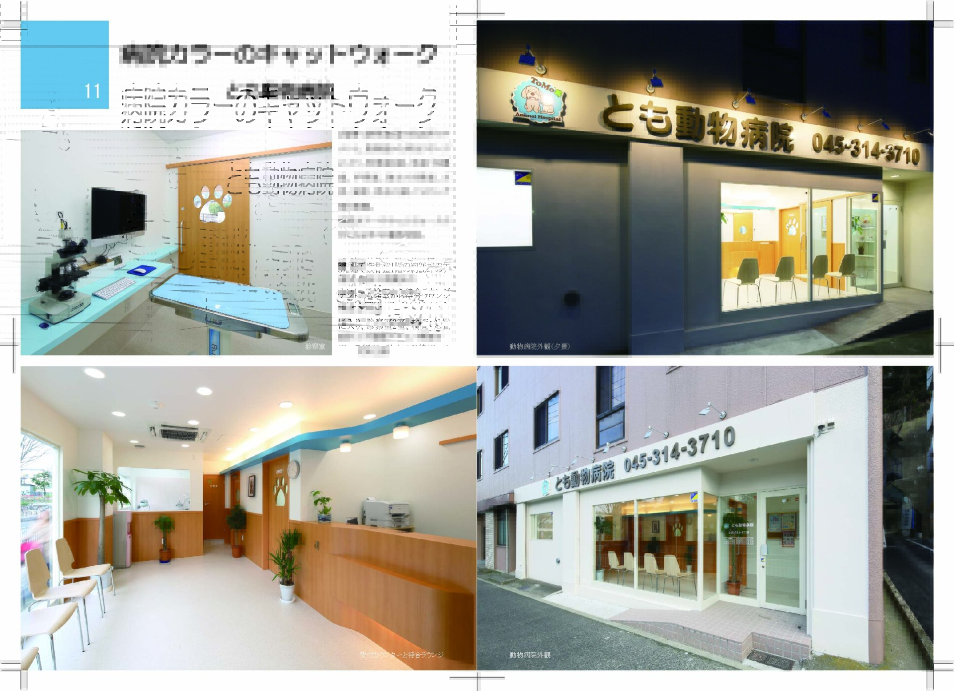 動物病院事例73例、テナント新規開業29例、テナント改修10例、テナント移転3例、新築新規開業13例、新築移転11例、既存改修7例を掲載。